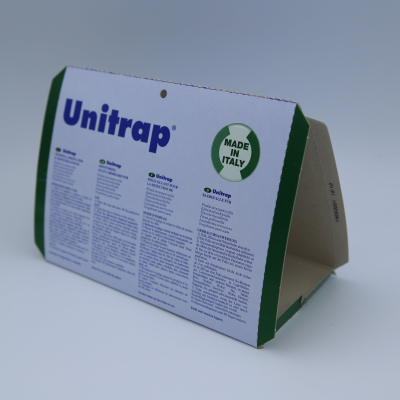 Le piège transparent est conçu comme un système de monitoring, à utiliser avec la gamme de plaquette de glu AF Diamond. Ses ouvertures triangulaires facilitent l'entrée des insectes.