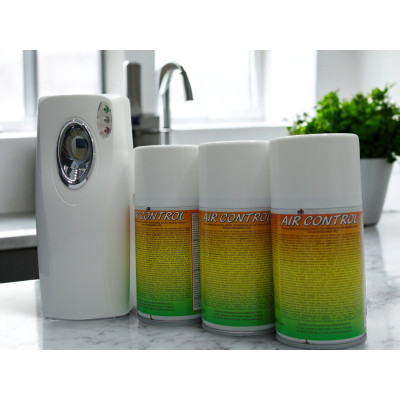 Le Pack découverte Airfree contient un diffuseur professionnel AirFree, 3 aérosols 250 ml Air Control de pyréthrine naturelle contre les insectes volants de type mouches, moustiques, guêpes, araignées, … et les piles.